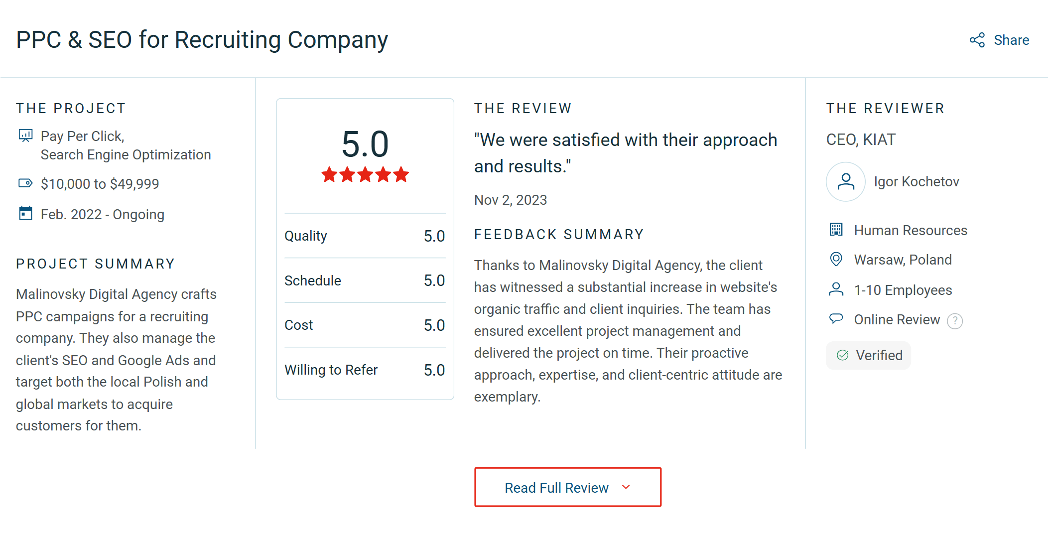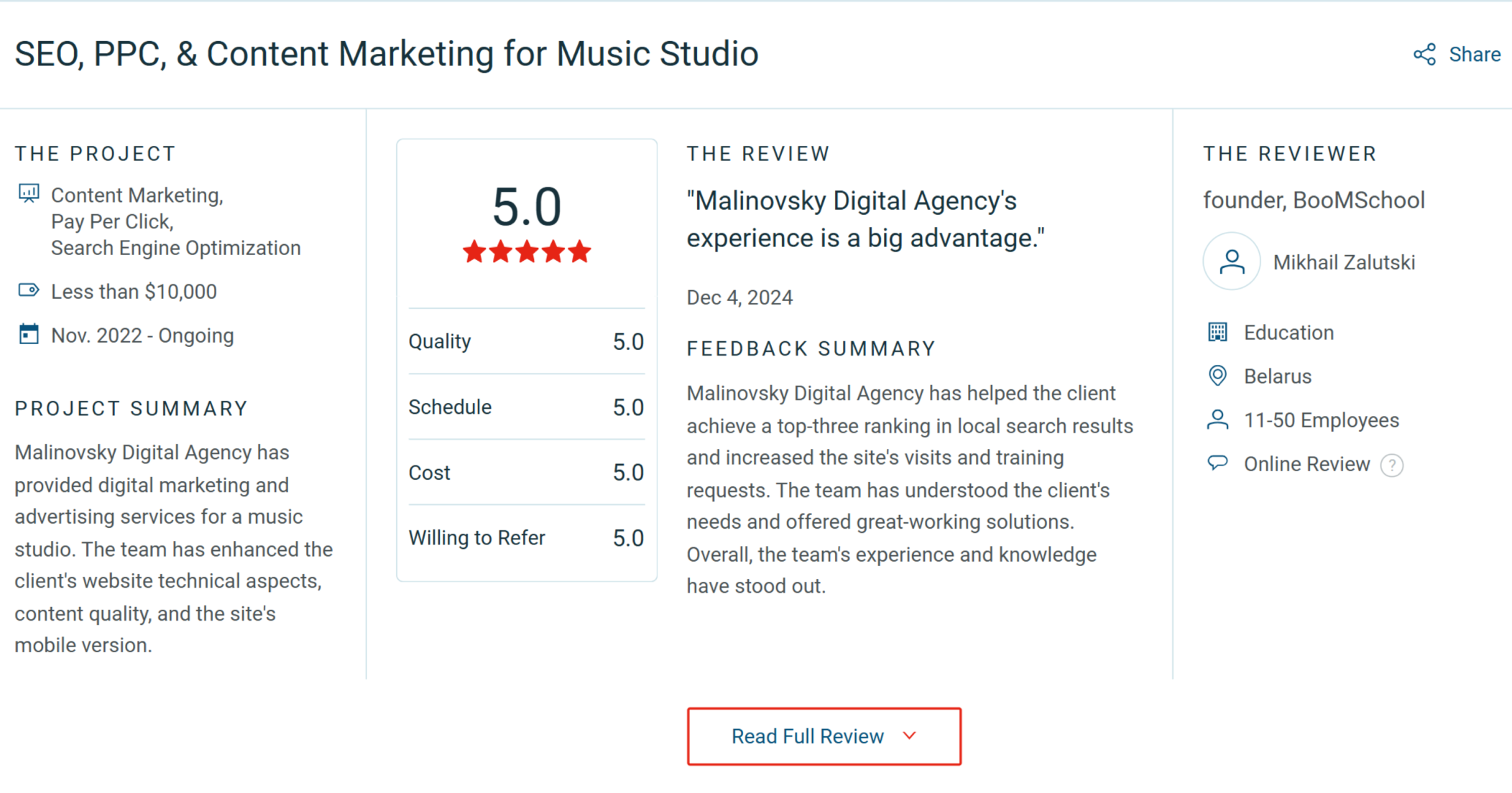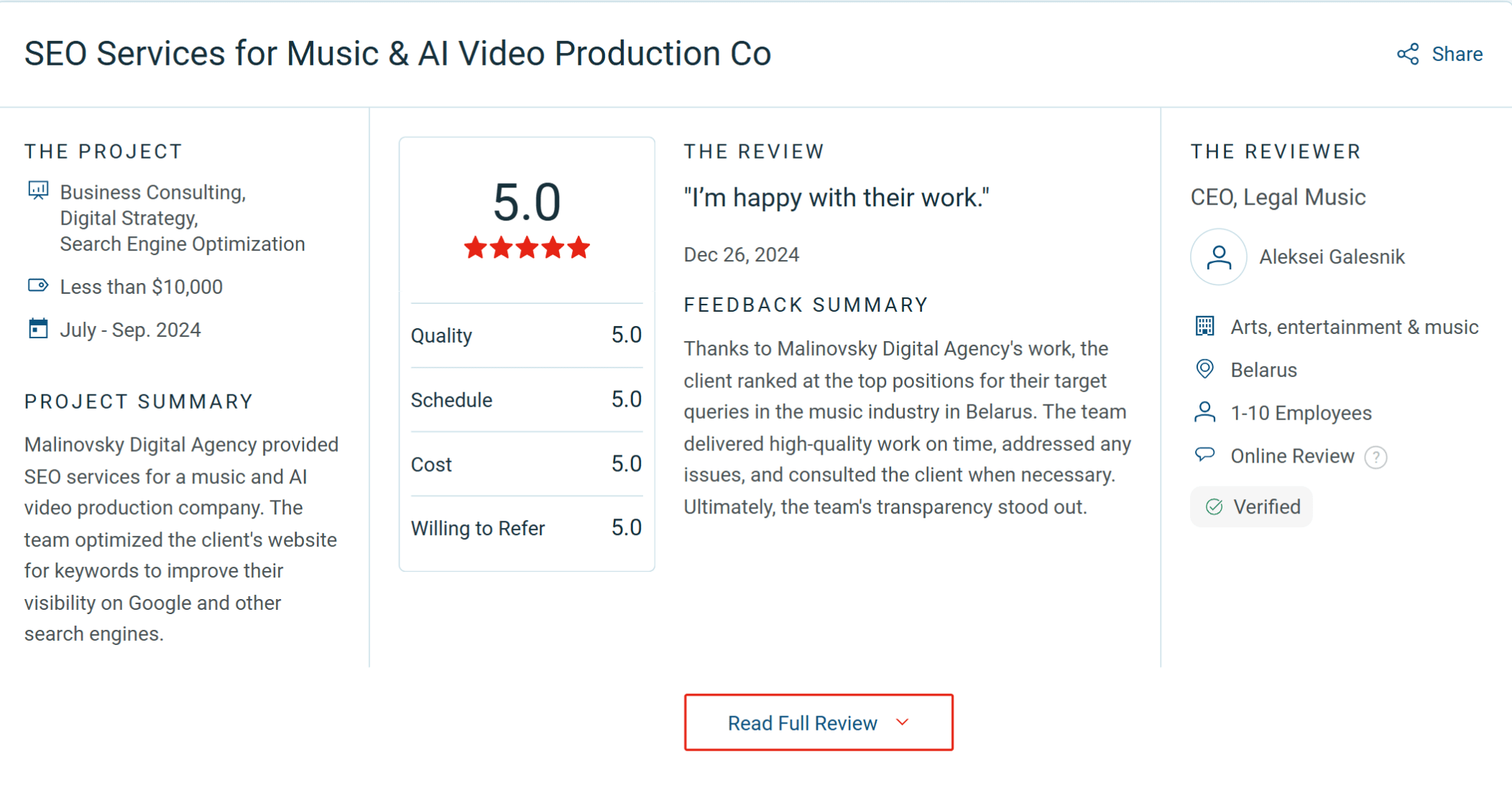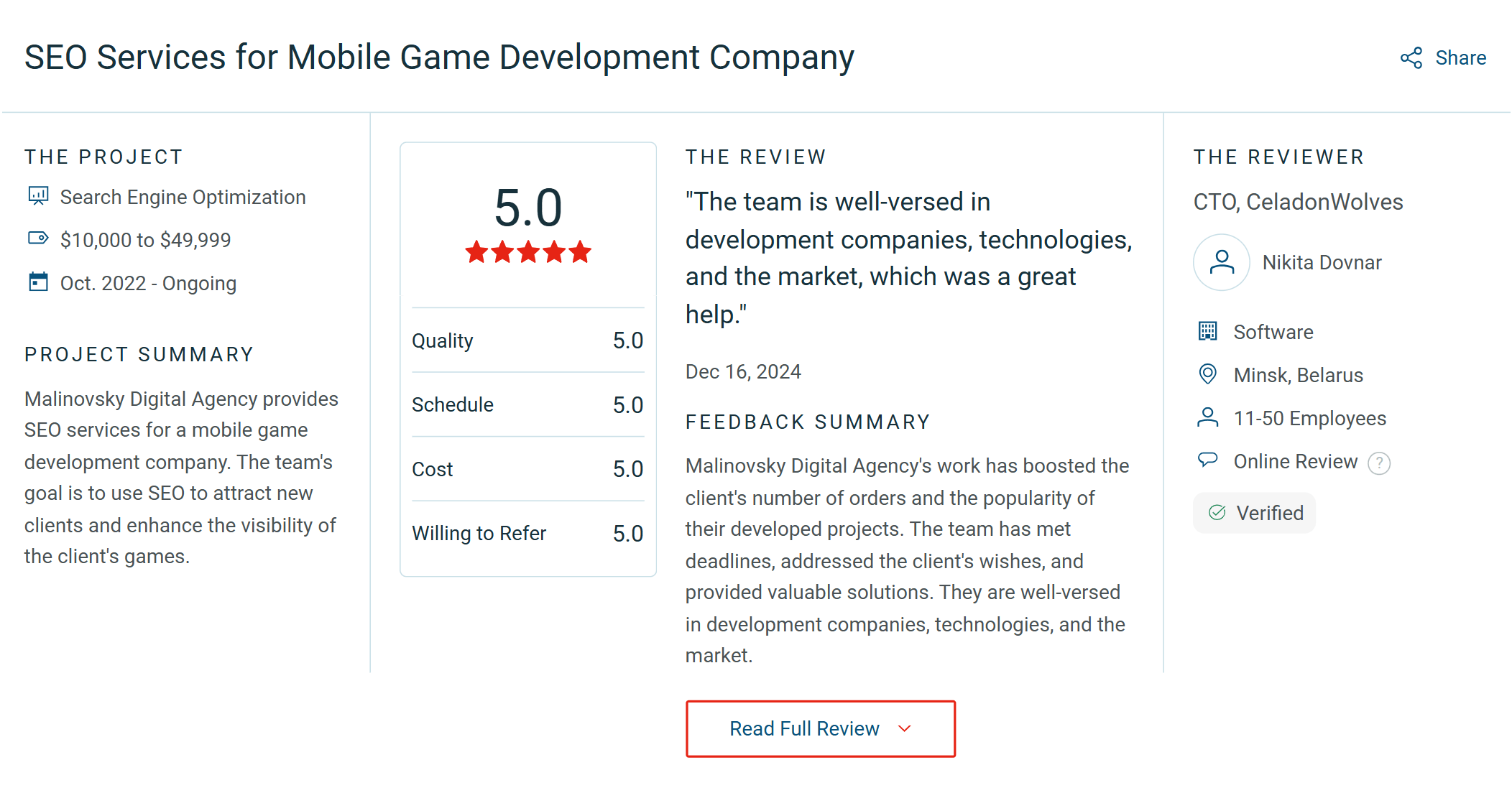 Working with a limited number of clients at a time ensures that each receives as much attention and resources as needed. This approach allows our specialists to delve deeply into the details of your project. We don't operate on autopilot — we think about how to make your project better in the online space.